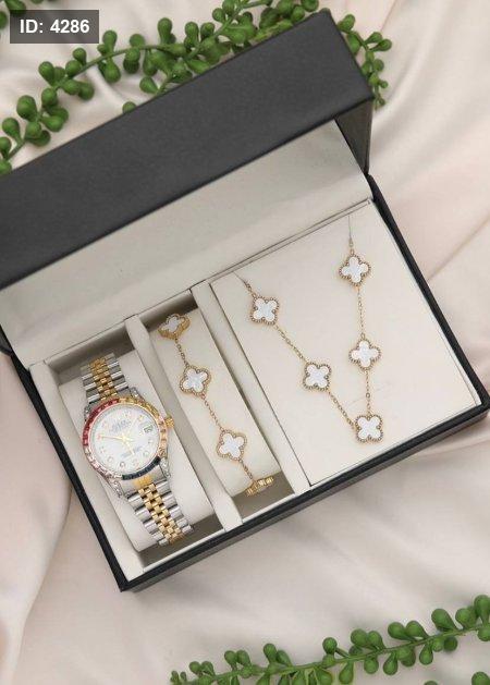 طقم نسائي (ساعة رولكس ستاتي + اسوارة + سنسال )