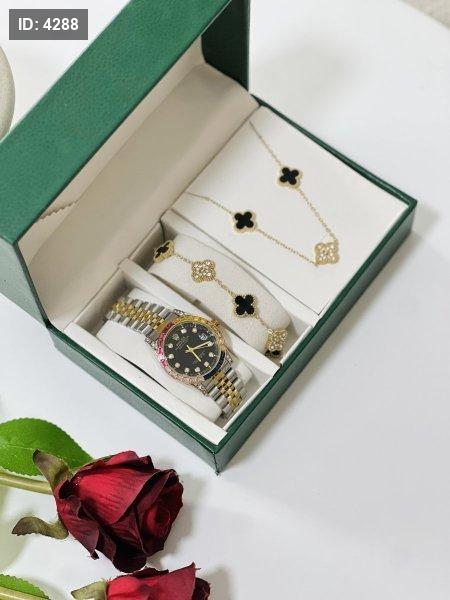 طقم نسائي (ساعة رولكس ستاتي + اسوارة + سنسال )