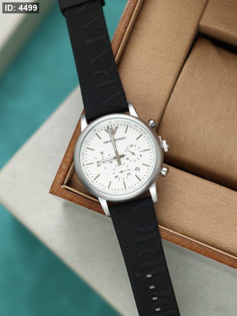 ساعة ارماني رجالي جلد (ساعة + علبة فخمة)