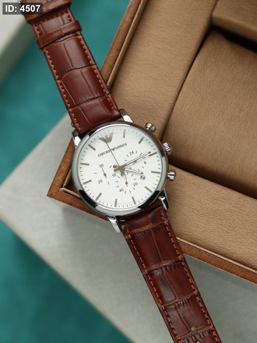 ساعة ارماني رجالي جلد (ساعة + علبة فخمة)