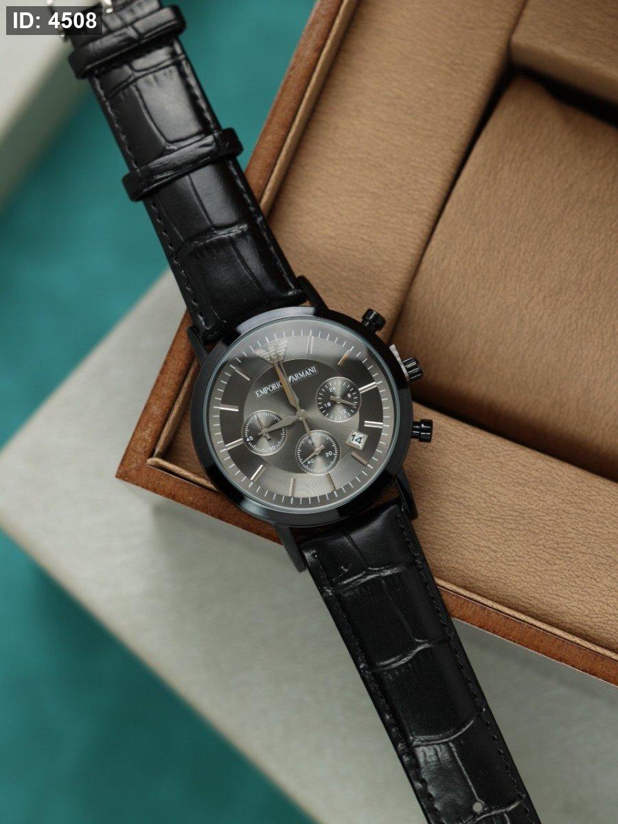 ساعة ارماني رجالي جلد (ساعة + علبة فخمة)