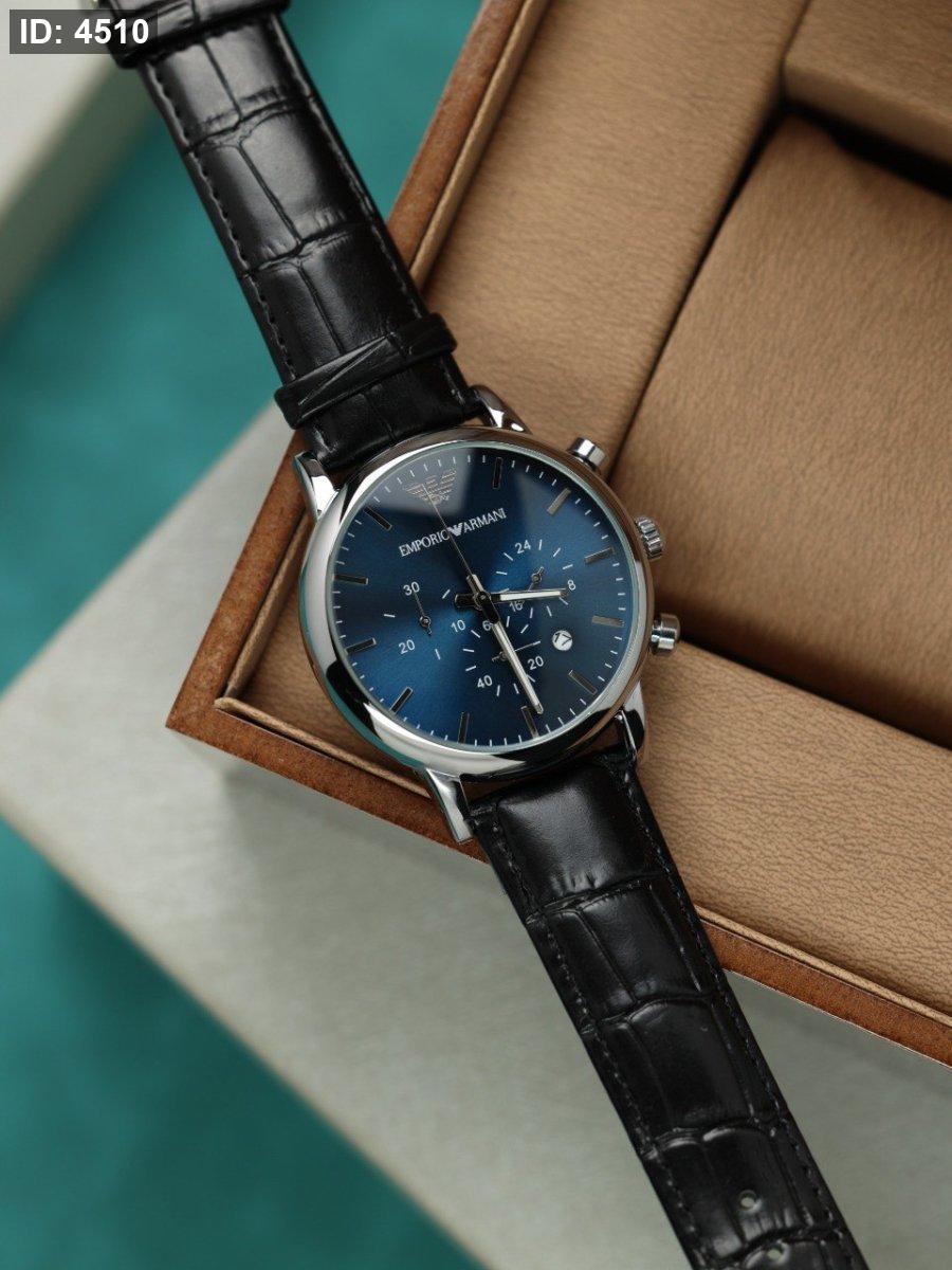 ساعة ارماني رجالي جلد (ساعة + علبة فخمة)